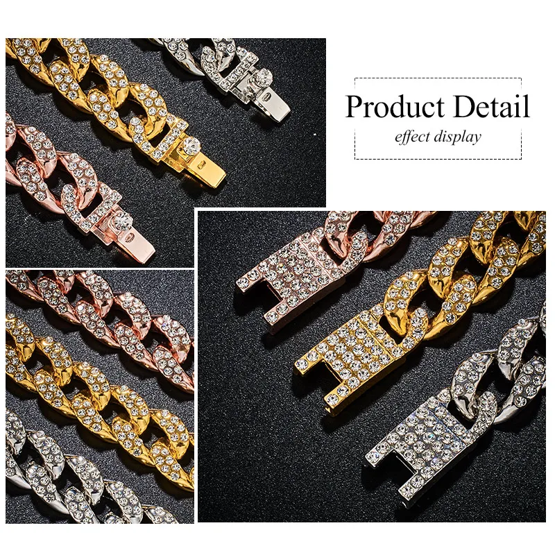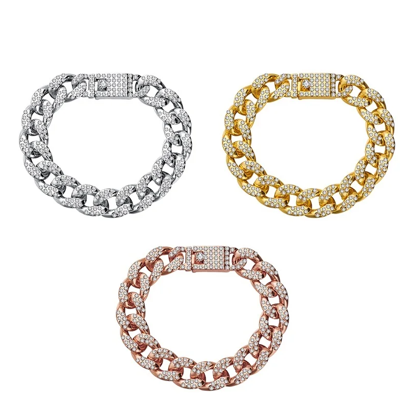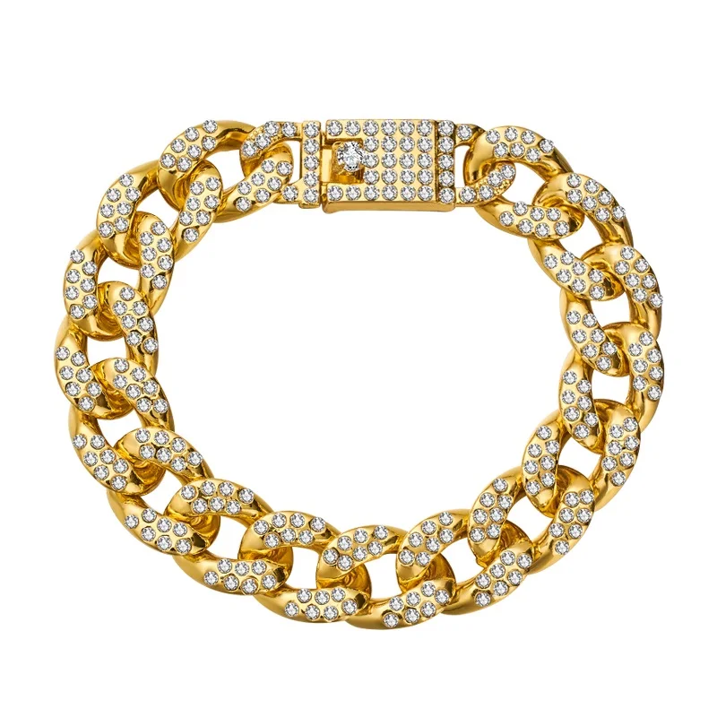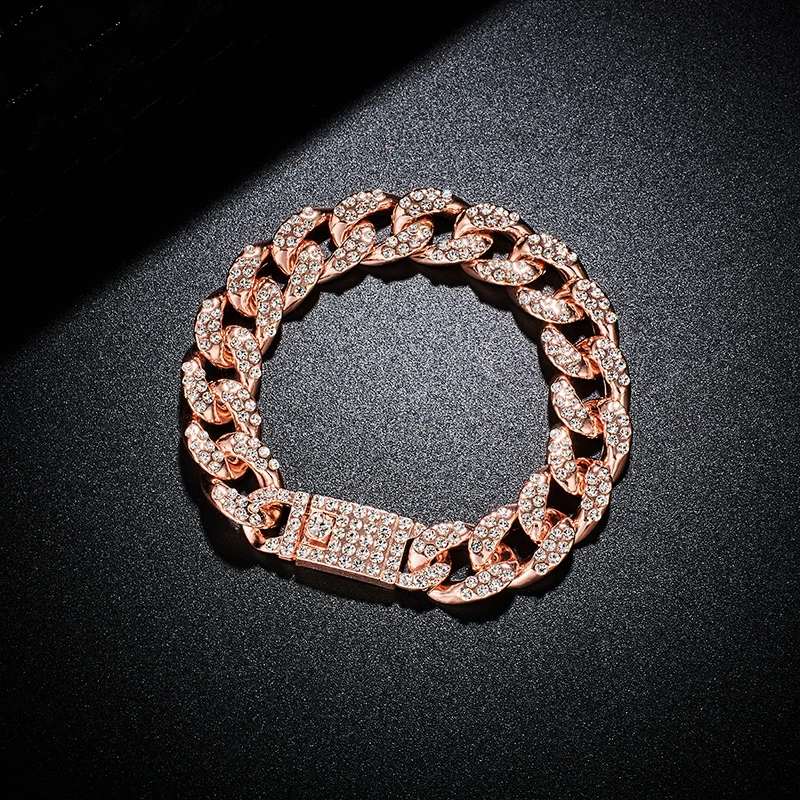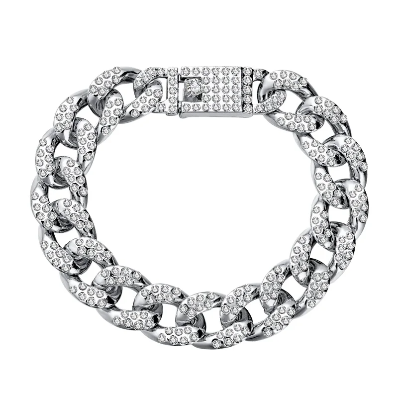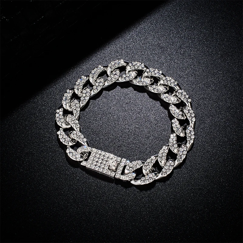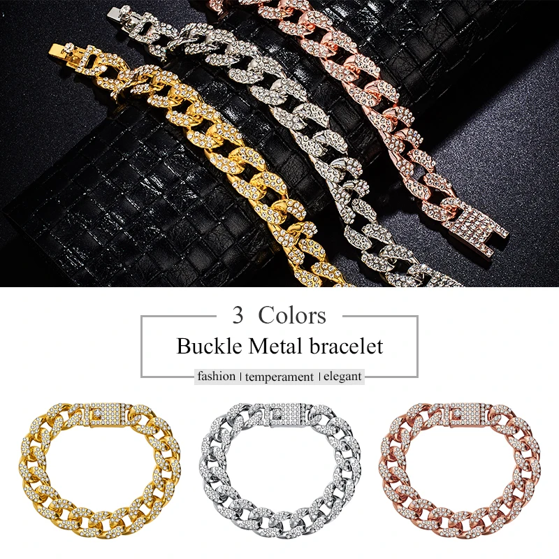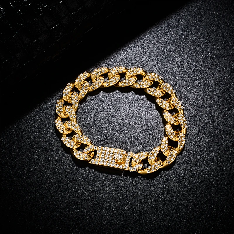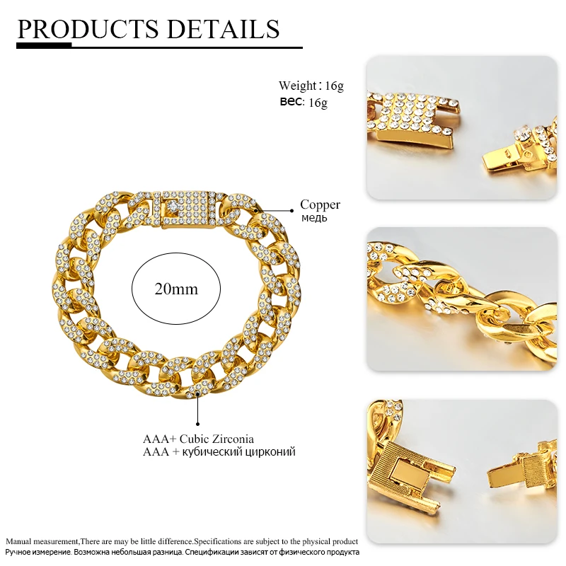 H:HYDE Men's Bracelet Hip Hop Miami Cuban Link Gold Silver Color Iced Out Paved Rhinestones Male Wristband Street Jewelry